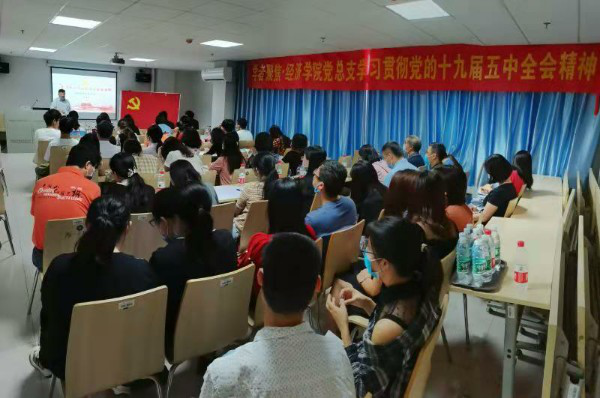本网讯(记者 沈灵丽)为了深入学习贯彻党的十九届五中全会会议精神,经济学院党总支于11月19日下午16:30在B9-201召开了学习贯彻党的十九届五中全会精神专题会议,经济学院党总支书记、副院长蒋金良,各党支部书记以及全体辅导员出席了本次会议。