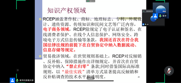 论坛伊始,黄教授从对外贸易视角,人民币国际化视角向大家讲解了RCEP的意义。从RCEP亮点、货物贸易、原产地原则、海关程序与贸易便利化、服务贸易、金融服务、投资七个方面进行详细分析RCEP的内容。
