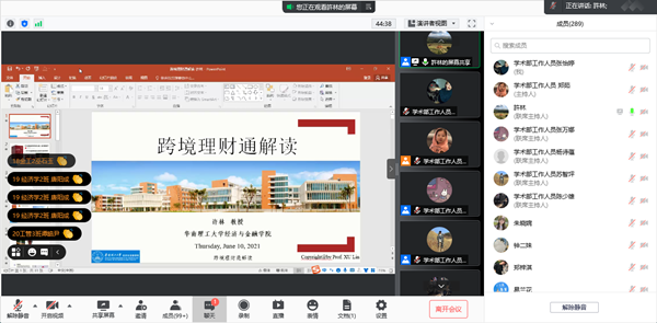 本网讯(记者 赵晓灿)为拓宽金融前瞻视野,培养高质量金融人才,6月10日晚上,经济学院利用腾讯会议举行第63期经济学论坛,特邀华南理工大学经济与金融学院许林教授担任主讲。经济学院院长杨星,党总支书记、副院长蒋金良及相关教师、学生,共363人参加本次论坛。