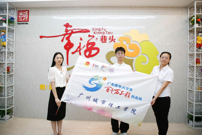 7月12日,大朗镇“百千万工程”突击队工作站揭牌仪式暨广东青年大学生“百千万工程”突击队授旗仪式在巷头社区举行。大朗镇团委书记张梦思,镇“百千万工程”指挥办副主任王刚,巷头社区居委会委员、团委书记李淼丽,广东医科大学团委副书记刘翅出席活动。大朗镇团委、各结对单位、村(社区)代表为我校“乡约筑梦”木偶戏实践团等18支大学生突击队进行授旗。
