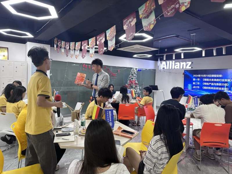 本网讯(记者 罗方泵)为了深化学生对保险行业的认知与实践能力,促进经济学子综合素养与专业水平的全面提升,10月17日-10月18日,经济学院在汕头君华海逸酒店与安联人寿保险有限公司联合举办两场分别以“人寿保险的专业知识深度剖析”、“人寿保险产品矩阵与职业发展路径”为主题的校企联动教学活动。经济学教研室钟二妹与黄聪权2位老师带领23经济学(专升本)1班的32名同学参与本次活动。