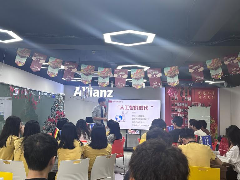 次日活动中,蔡凯生经理邀请钟二妹老师与黄聪权老师上台,分享他们对安联人寿的深刻印象与未来期望。钟老师以其独特的视角,分享了关于保险行业人性化服务的见解,以及安联人寿如何在细微之处展现关怀与专业的故事,并结合安联人寿的实际案例,分享了如何将课堂理论知识与实际操作相结合,从而提升学生的实践能力和职业素养。黄老师则对安联人寿的企业文化及蔡经理的专业服务给予高度评价。随后,安联人寿保险有限公司汕头分公司总经理杨帆女士发表致辞,热烈欢迎学生们的到来,并分享了她在保险行业的宝贵经验与独到见解。在业务详解环节,蔡凯生经理通过三个小节,详细阐述了安联公司的业务领域。他首先展望了寿险行业的未来发展趋势与机遇,帮助学生把握行业脉搏。接着,他介绍了安联寿险的最新产品及条款,让学生紧跟市场动态。最后,他解读了安联的组织架构,探讨了保险行业中的职业发展路径与策略,分享了自己在工作中面对挑战时的应对策略,为学生的职业规划提供了切实可行的建议。他的分享深深触动了在场学生,激发了他们面对未来职业挑战的信心与决心。