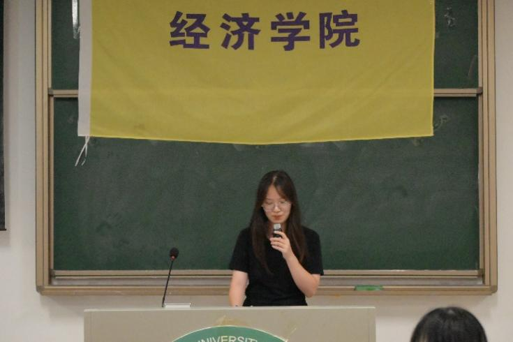经济学院主席团成员齐静发言(吕优悠 梁紫珊摄)