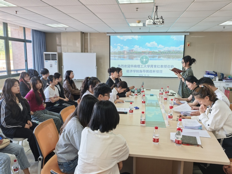 本网讯(记者 兰婷 王子烨)10月25日,经济学院在B9二楼中庭会议室举办2025年“挑战杯”中国大学生创业计划竞赛的院内项目打磨暨推选赛。本次赛事荣幸邀请到华南理工大学经济与金融学院教授博士生导师、麻省理工学院(MIT)博士后、罗格斯大学聘任教授周育红担任嘉宾评委。经济学院党总支书记任远、学生工作办公室负责人、学院竞赛负责人及师生共计30余人参与。