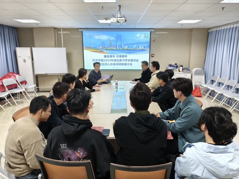本网讯(记者 毛锦淇)为深入了解退伍复学学生的学习、生活和思想状况,扎实做好学院征兵入伍、退伍复学学生的管理与服务工作,经济学院在B9中庭会议室隆重召开了退伍复学学生座谈会暨征兵入伍宣讲团换届大会。学院党总支书记任远、相关教师及退伍复学学生参加了本次座谈会。