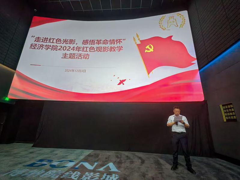 本网讯(记者 毛锦淇)为让学生们在光影交错中感受革命先烈的英勇无畏与坚定信念,进一步激发其爱国情怀和时代责任感。12月3日下午,经济学院在雅乐城电影院如期举行以“走进红色光影,感悟革命情怀”为主题的红色“志愿军”观影教学主题活动。学院党总支书记任远、副院长黄瑞新及师生代表参与。