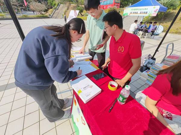 活动前期,学院通过公众号推文详细解读活动意义,强调“知识共享”与“资源循环”的双重价值,吸引师生广泛关注。3月21日下午,活动在学生活动中心广场启动,志愿者团队提前布置场地并设置“爱心签名墙”,为捐赠者提供小夜灯等小礼品以提升参与热情。