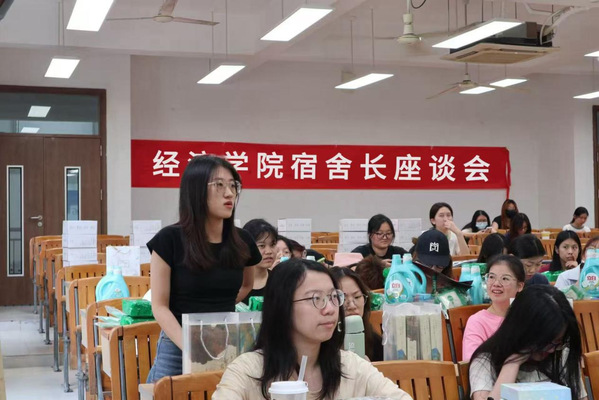 本网讯(记者:刘坤钊 王舒婷)为进一步强化学生宿舍安全教育,畅通学院与宿舍长之间的沟通渠道,凝聚宿舍管理合力,营造学习型、安全型、健康型等宿舍氛围。5月13日,经济学院于A5 - 107教室精心组织了一场宿舍长座谈会,经济学院团学指导老师、宿舍板块负责老师及各年级、各宿舍的百余名宿舍长共同参与本次会议。