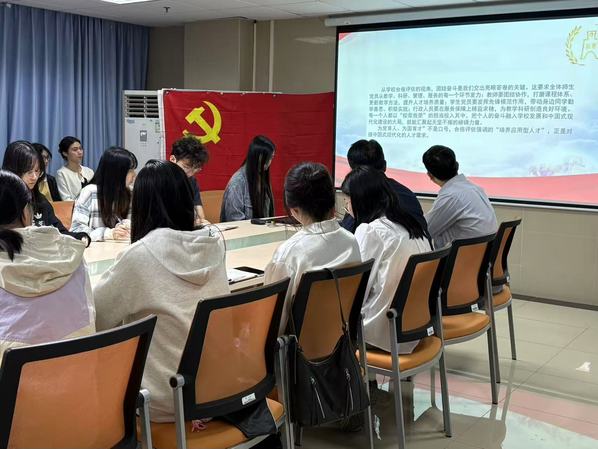 会议开始,任远书记围绕迎评促建工作提出明确要求,强调学生党员需以团结、奋斗、攻坚精神推动评估高质量发展。他指出,党员应发挥先锋模范作用,在学风建设中带头遵守纪律、参与科研,在服务同学中主动解决学业与实践难题,凝聚迎评合力;要以“主人翁”姿态践行育人使命,课堂上树立学习标杆,集体中迎难而上,彰显应用型人才培养的先锋担当。他号召全体党员以行动诠释责任,将团结奋斗精神融入迎评全过程,交出无愧于时代的育人答卷。