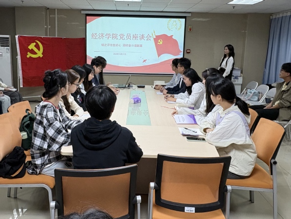 本网讯(记者 赵晓灿 何寒忆)为深入学习贯彻党的精神,扎实推进学校本科教学工作合格评估准备工作,凝聚党员力量、夯实育人根基,10月21日,经济学院于B9二层中庭会议室召开“锚定评估践初心 团结奋斗谱新篇”为主题的学生党员座谈会议。经济学院党总支书记任远、党总支副书记张全胜及组织员赵晓灿参与本次会议。