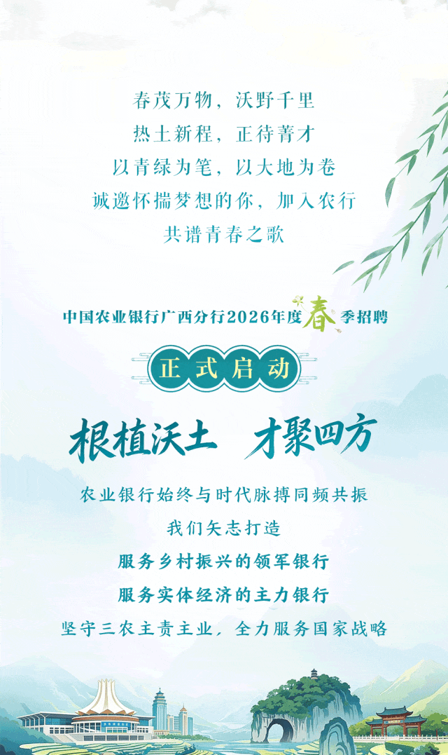 【招聘推荐】中国农业银行广西分行2026年度春季招聘正式启动