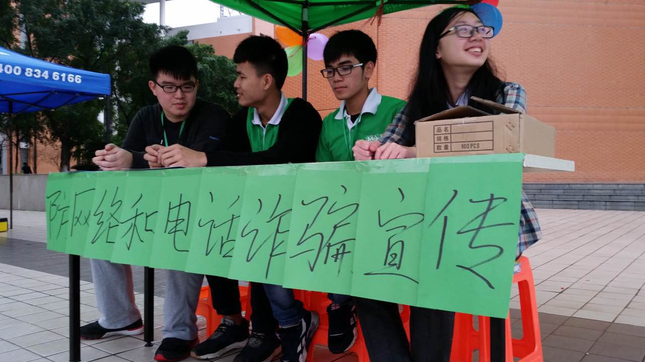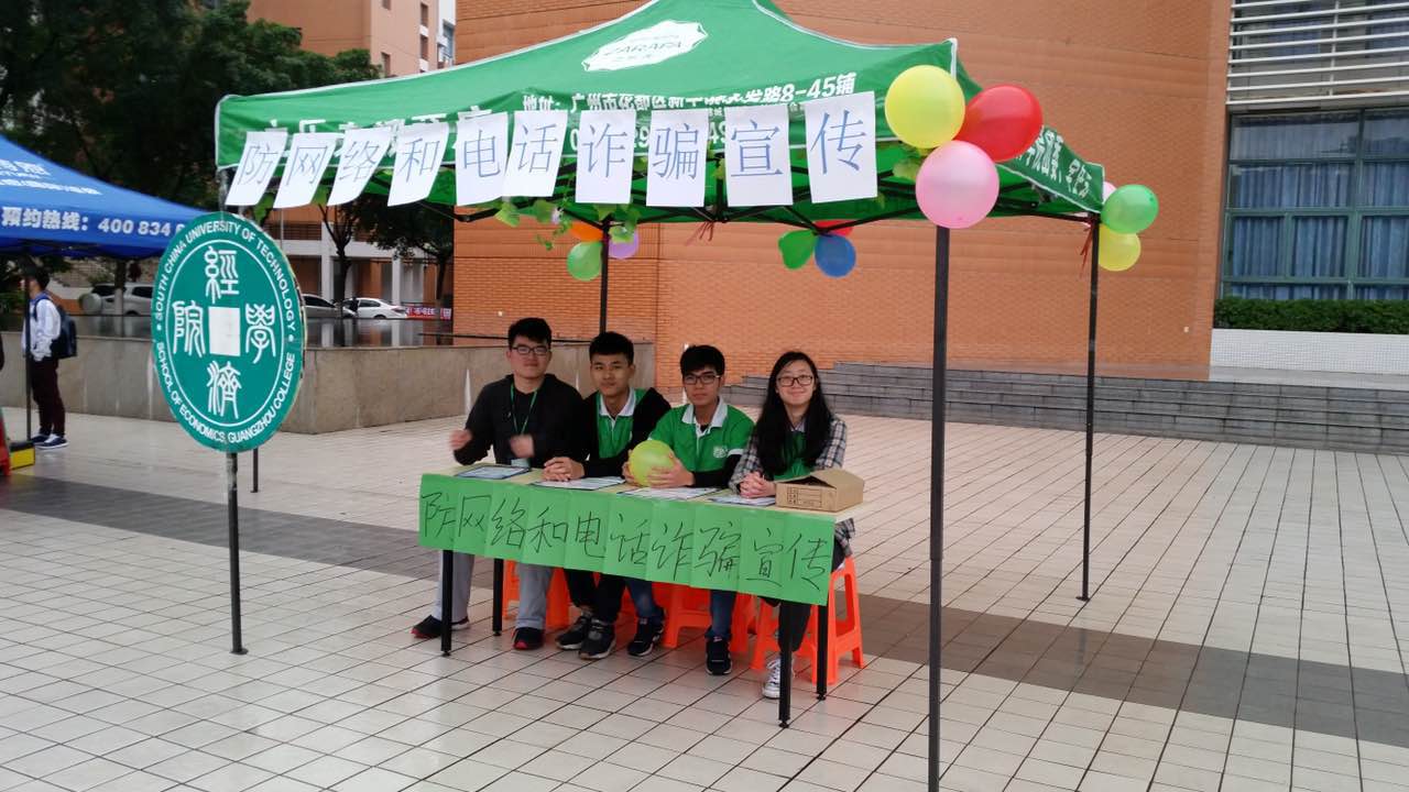 为了积极响应我校2016年“公益文化节暨学雷锋全民志愿者服务行动月”系列活动的通知,进一步弘扬雷锋精神,培育和践行社会主义核心价值观,经济学院团委、学生会实践部在3月21日于图书馆门口进行为期一天的“预防网络和电话诈骗”宣传活动。
