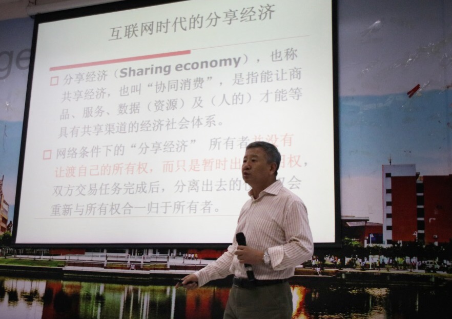 3月31日下午,经济学院在A6-101举办了经济学院经济学论坛第二十五讲之迎接互联网时代。应经济学院党总支书记蒋金良院长的邀请,本次讲座的主讲人是来自华南理工大学的博士生导师龙志和教授。出席本次讲座的嘉宾有华南理工大学工商管理学院导师、广州俊望企业管理咨询有限公司董事总经理关志坤先生,广州思创企业管理咨询有限公司副总经理徐浩泉先生,经济学院院长杨星教授,经济学院党总支书记、副院长蒋金良书记以及经济学院其他教师。