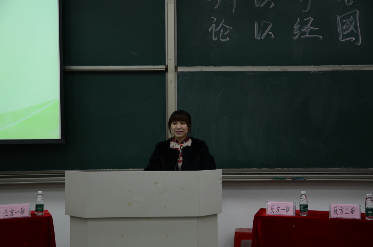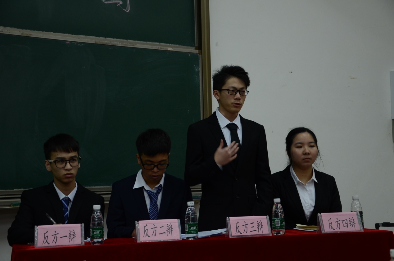 开场后,经济学院团委副书记钟二妹老师对本次比赛致开幕词,并对本场及往后的班级辩论赛给予殷切的希望。随即8位辩手纷纷登台亮相,比赛正式开始。