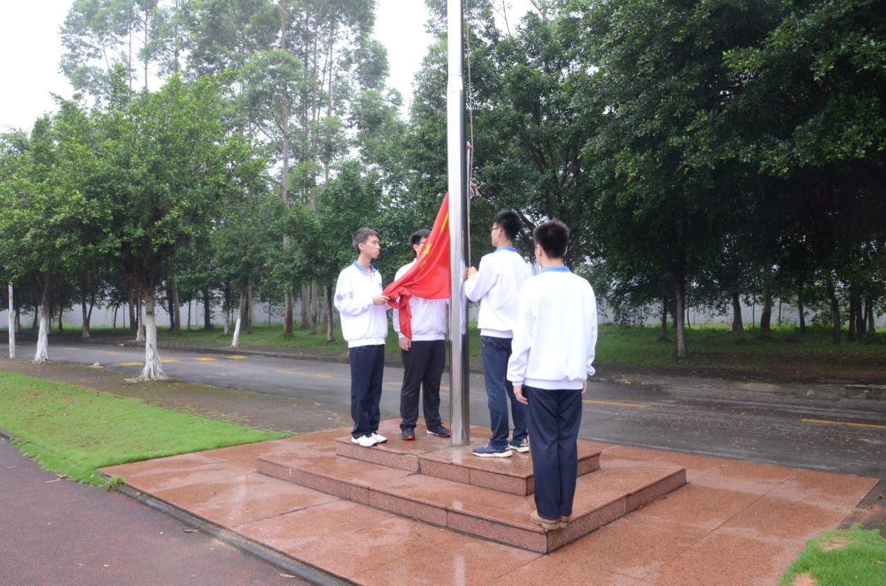 随着国歌奏响,国旗缓缓上升,全体一致行注目礼。