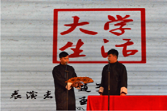 随后,精彩的班级才艺表演陆续上演。相声《大学生活》以有趣幽默的方式诠释了大学生活,话剧《黑姑娘》生动活泼的演出带给观众无比的欢乐,清唱《梦•时光》动听悠扬的歌声让观众流连忘返。每个节目都是如此别具匠心,让观众一睹他们的风采,引得现场一阵欢呼。