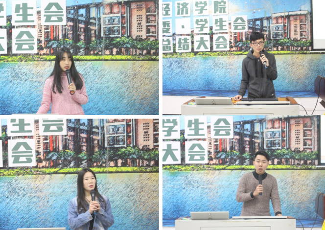 随后,各位常委上台总结,主要围绕各部门的工作回顾、努力方向以及下学期工作安排三个方面进行发言,并鼓励各个部门再接再厉,脚步永不停歇。希望大家能在学习的过程中成长,为经济学院全体师生奉献自己的一份力量。