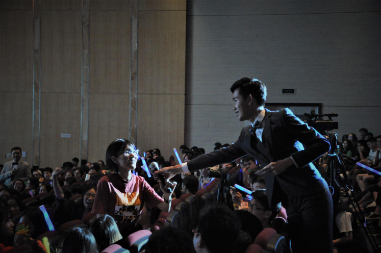 满足了耳朵的同时,在主持人神秘的解说下同学们开始期待有趣的互动环节,欢乐的气氛感染了在场的每一位观众,他们‘争先恐后’跃跃欲试,使全场氛围热情似火,笑声不断。