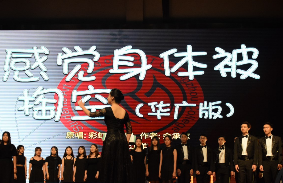 随后,精彩的表演陆续上演。多才多艺的华广学子携艺术合唱团给同学们带来的《感觉身体被掏空》,诉说出了刚入校园那个时候的同学们对前途的迷茫与无措与毕业时对学校的眷恋和不舍;