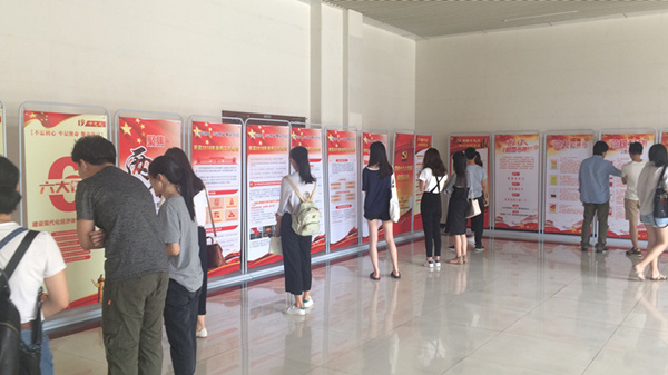 5月17日下午4点40分,经济学院学生第一党支部在党支部书记储大可的带领下、党支部副书记赵晓灿的组织下,共有18名支部成员在图书馆一楼大厅参观了此次图片展。