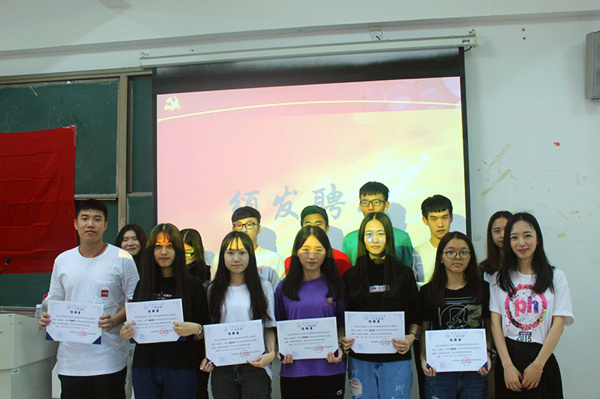 接下来,大会依次给党务办公室、团委学生会、学院团队队长、学生就业促进会、团委爱心协会、心理健康协会以及各班班团干的学生干部颁发了任命书,并对优秀团支部进行了表彰。优秀团支部团支书代表李珊同学与我们分享了优秀团支部建设的经验。她认为,要充分发挥班干的核心作用,无论学习上,还是生活上。班干们要不定时做民意测评,开展团支部活动,了解同学们职业规划,很利于整个班级积极向上发展。