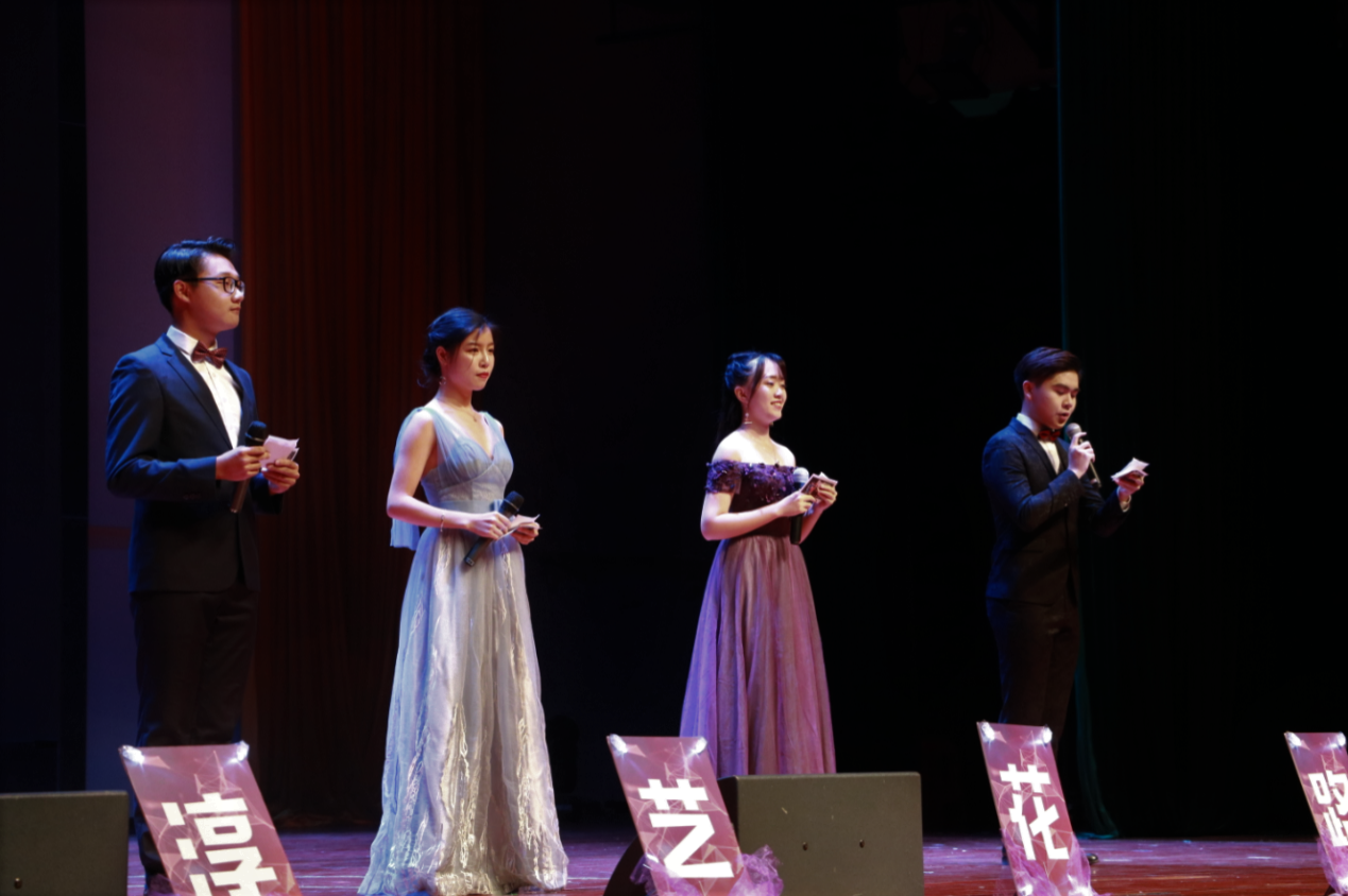 本次晚会由李懿瑜同学、王敬同学、周嘉洢同学和邹玮桥同学主持。