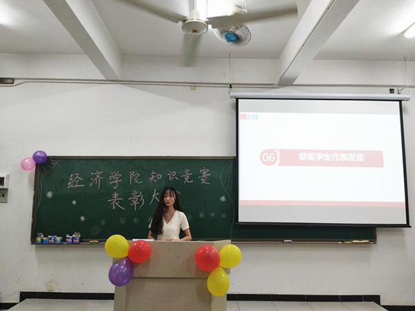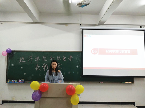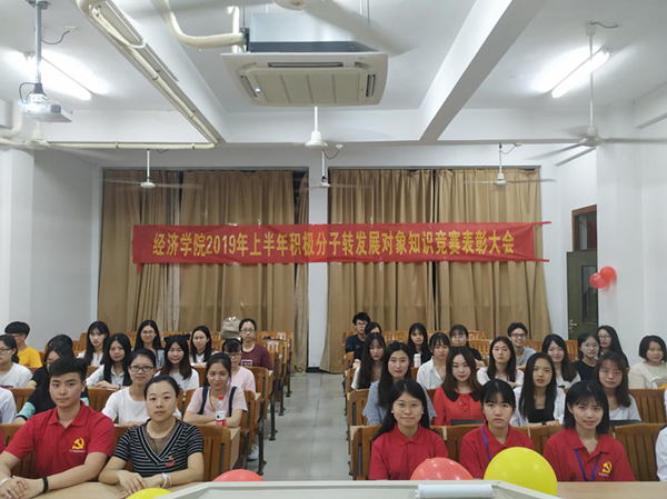 本网讯(记者 卢晓萍)2019年5月16日晚上19点,经济学院2019年上半年积极分子转发展对象知识竞赛表彰大会在A1-307圆满举行,参加此次大会的成员有经济学院党务办公室常务副主任王巍峰、学生党员代表、党务办公室工作人员和全体获奖学生。