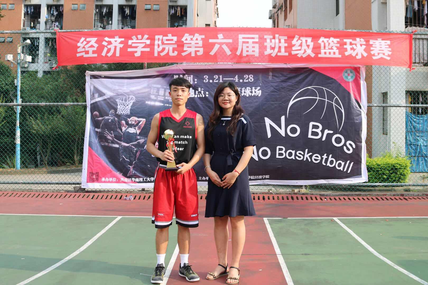 本网讯(记者 杨紫琦 张智威)2019年5月16号,经济学院班级篮球赛迎来了万众瞩目的冠军和季军争夺赛,出席本次班级篮球赛闭幕式的嘉宾有经济学院团委副书记赵晓灿老师,经济学院团委学生会主席莫纪贤同学以及经济学院学生会副主席许炜炫同学。