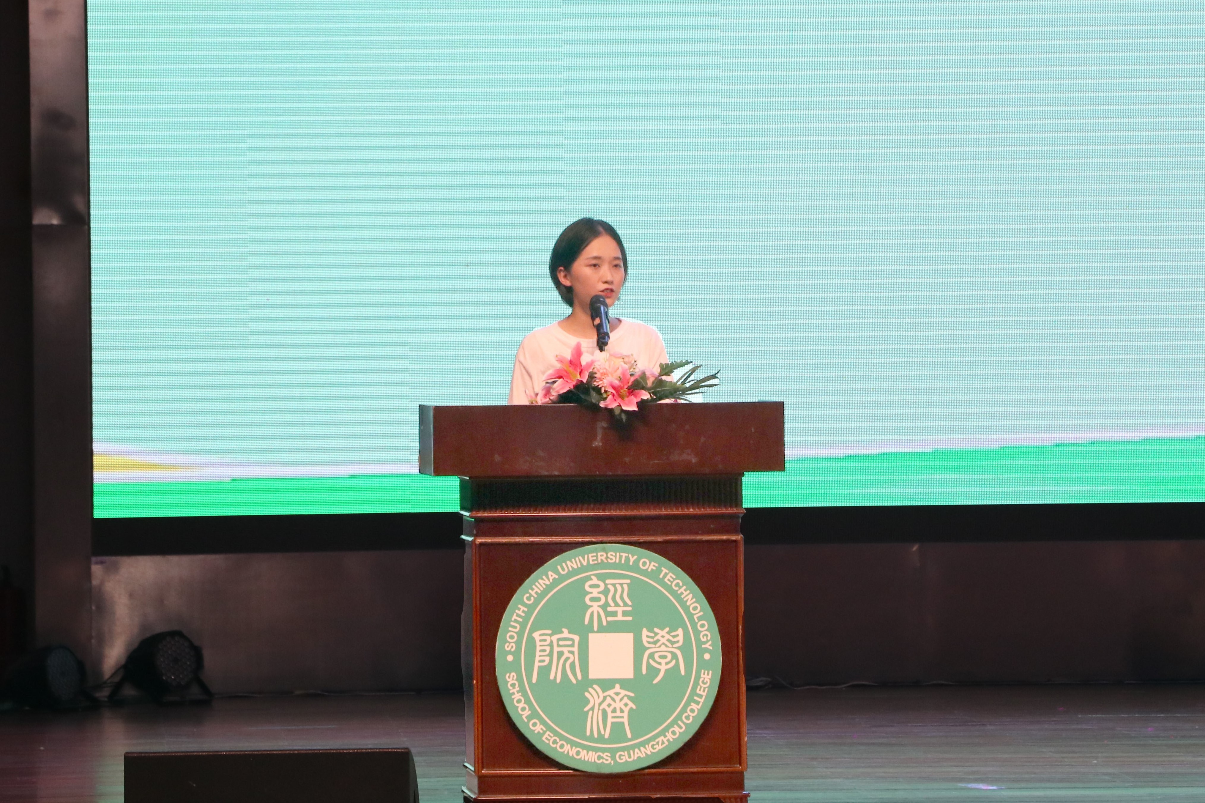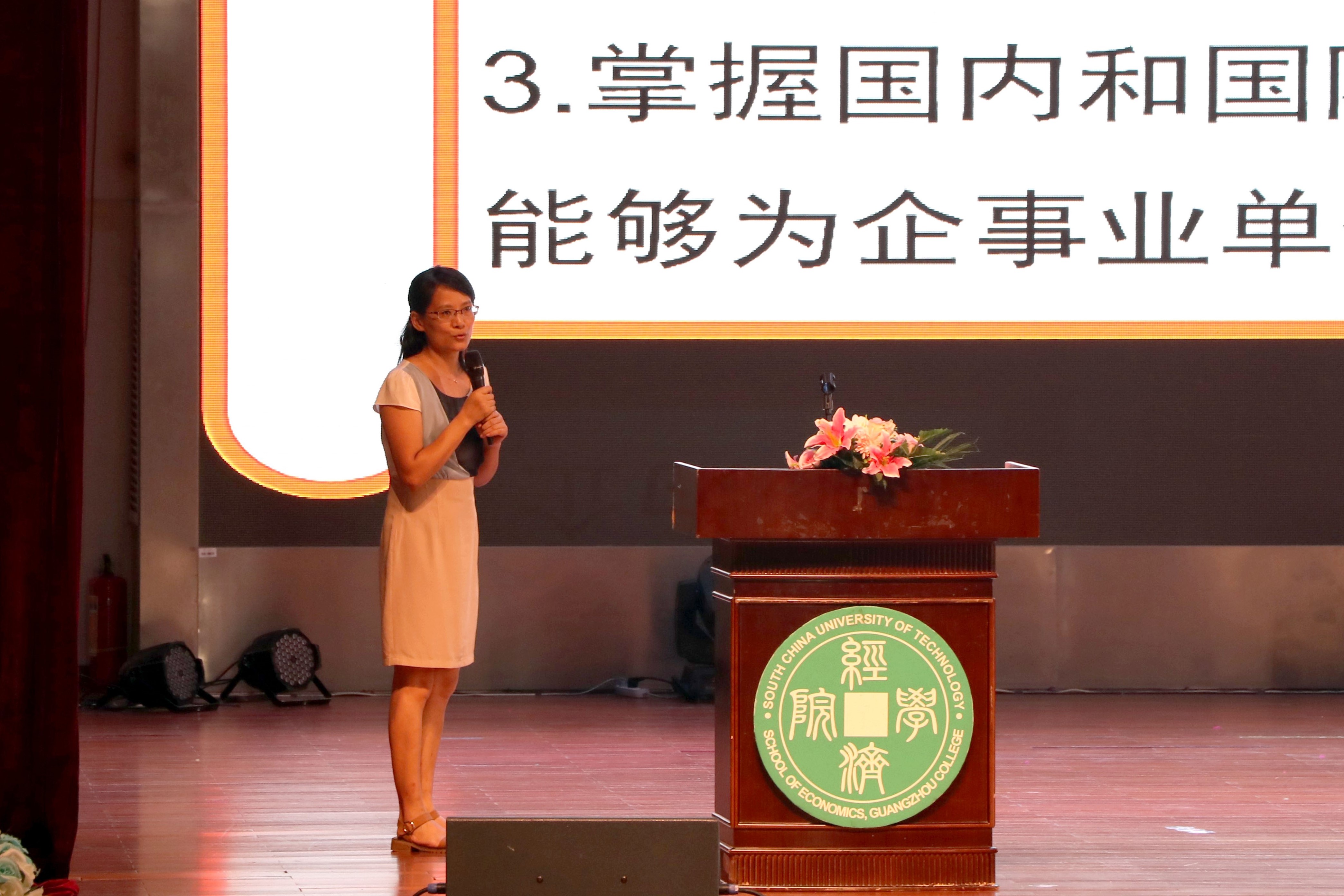经济学院院长杨星教授首先致辞,对19级新生的到来表示热烈的欢迎以及衷心的祝贺。在简单地介绍经济学科后,杨星院长从要有一颗中国心、谨记责任、制定目标以及规范达成目标的行为四个方面对新生表达期望,希望新生们在认真学习专业知识的同时,也能在华广经济学院快乐成长。