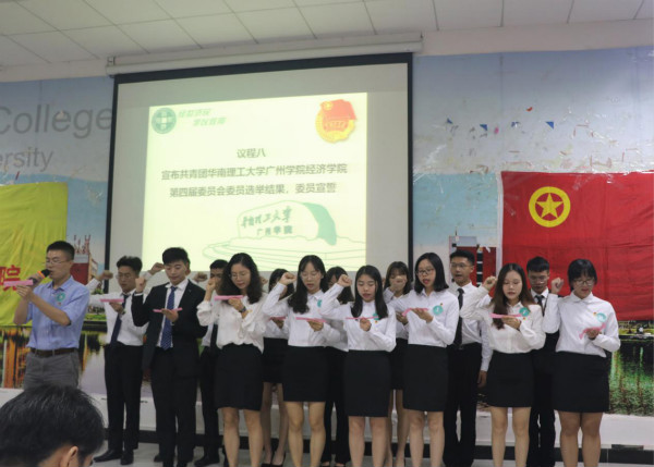 本网讯(记者 邓俊轩 杨紫琦)10月10日晚6点,共青团华南理工大学广州学院经济学院第四次代表大会在A6-101召开。