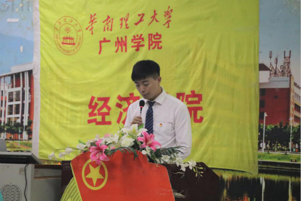 本网讯(记者 黄嘉颖 杨紫琦)10月10日晚20点整,华南理工大学广州学院经济学院第五次学生代表大会在A6-101隆重召开。出席本次大会的嘉宾有经济学院党总支书记、副院长蒋金良副教授,党总支李玲副书记,团委书记简宪堃老师,团委副书记葛阳隆老师、赵姣老师,就业促进会指导老师张全胜老师,19级辅导员钟二妹老师以及学生代表们。