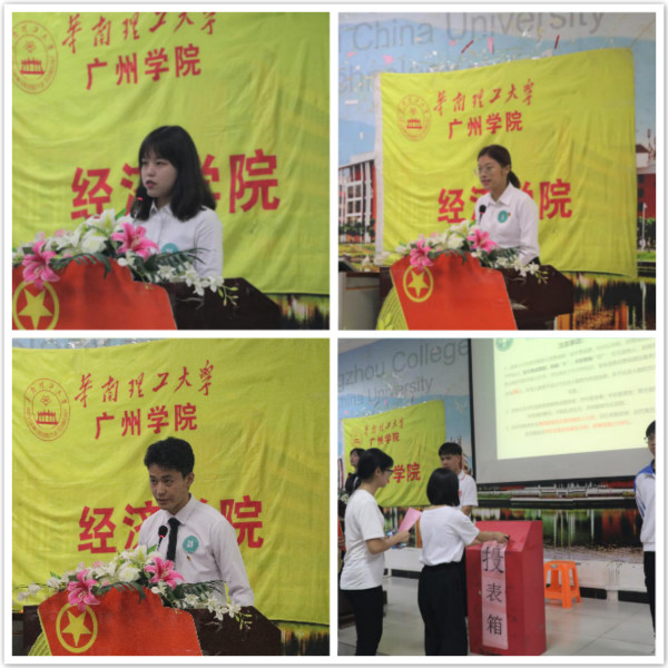 在计票工作进行的同时,葛阳隆老师上台作《华南理工大学广州学院经济学院学生会第四届委员会工作报告》。 葛阳隆老师对经济学院学生会构建组织文化、健全规章制度、加强宣传工作、坚守服务同学的宗旨方面给予高度评价,并提出进一步完善规章制度、树立良好作风、增强创新意识的建议。