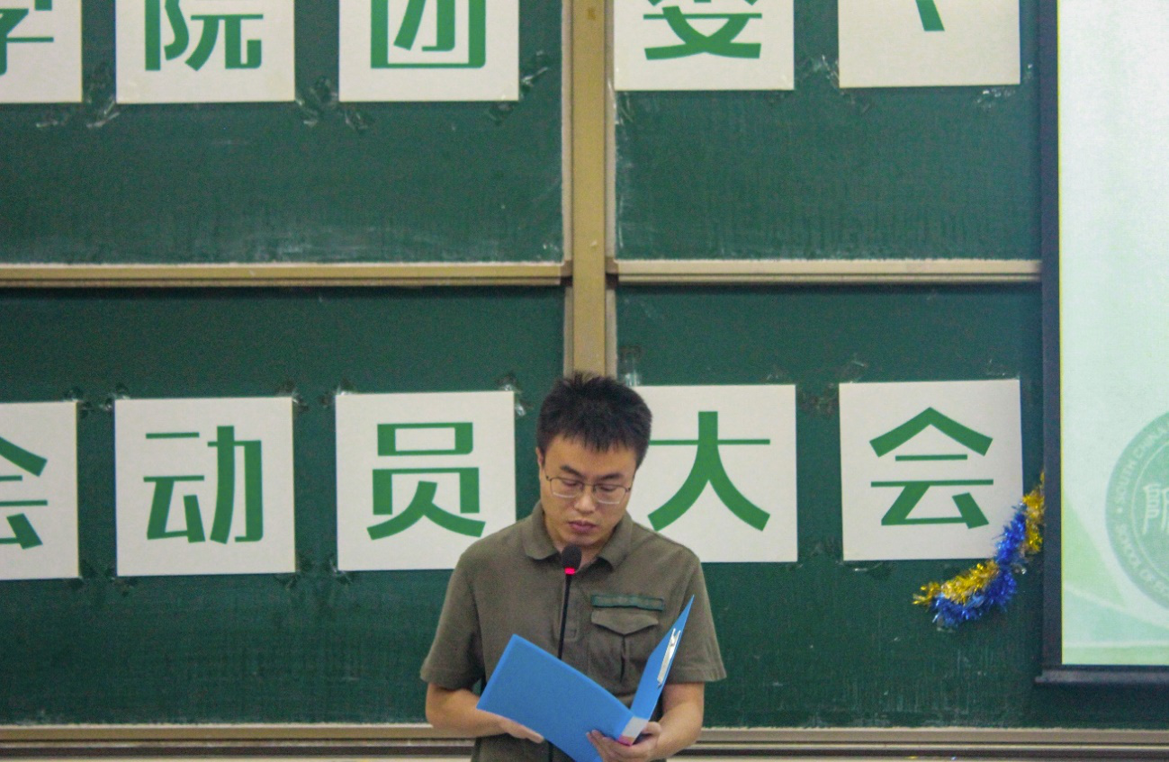 接着由简宪堃老师为本次大会致开幕辞。简宪堃老师在致辞中对经济学院团委、学生会经过层层面试后新到来的成员给予衷心的祝贺,也对经济学院各部门工作给予肯定,并提出了应以“源于同学,服务同学”为宗旨、加强个人总结与反思、有团队合作意识、敢于应对挑战等多点建议。