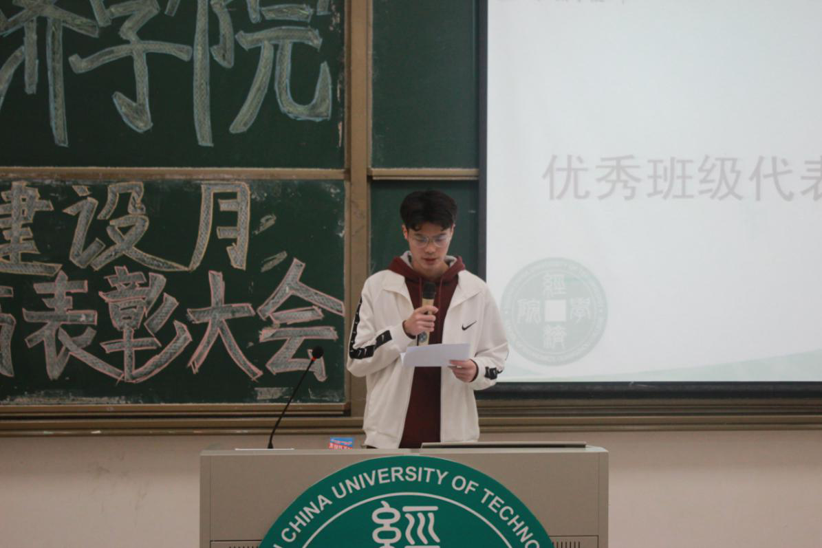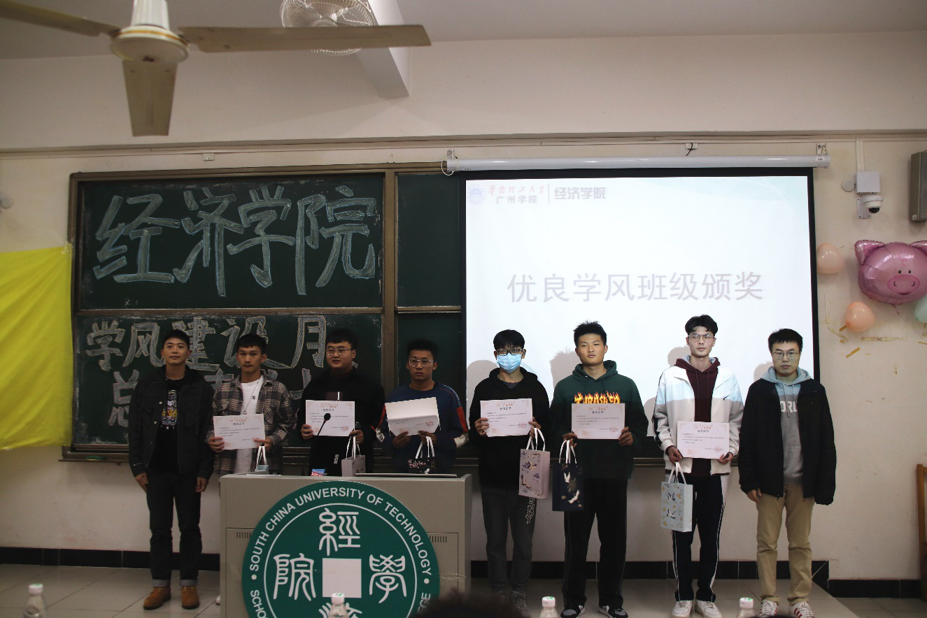 紧接着,为了树立良好的榜样,不断发扬优良学风,树立正确学风意识。由经济学院团委书记简宪堃老师和经济学院团委副书记葛阳隆老师为优秀学风班级进行颁奖并合影留念。