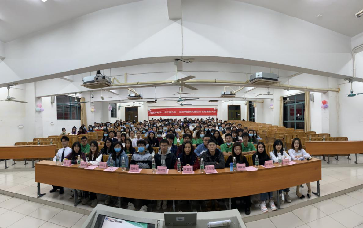 通过此次总结表彰大会,我们更要坚持不懈地加强学风建设,在紧抓学风的同时注重培养学习的自律意识,提高整体素质。用实际行动贡献自己的力量,营造优良的学风氛围,使经济学院能够发展得越来越好!