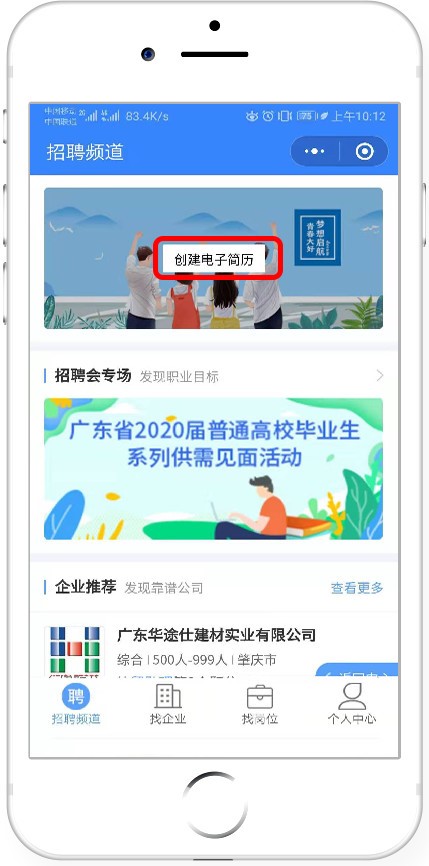 第二步:点击“毕业生求职”模块,如已绑定学籍的同学即可完善简历并投递。