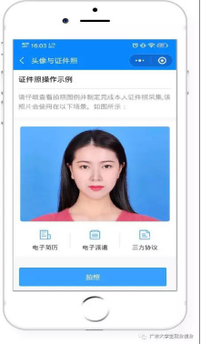 第五步:点击“我的简历”中的头像,上传符合要求的免冠照片,系统即可快速生成蓝色背景的证件照片。照片可适用于简历、派遣、电子就业协议等系统中的多个服务场景(证件照片经过公安部后台校验,符合国家证件照标准)。