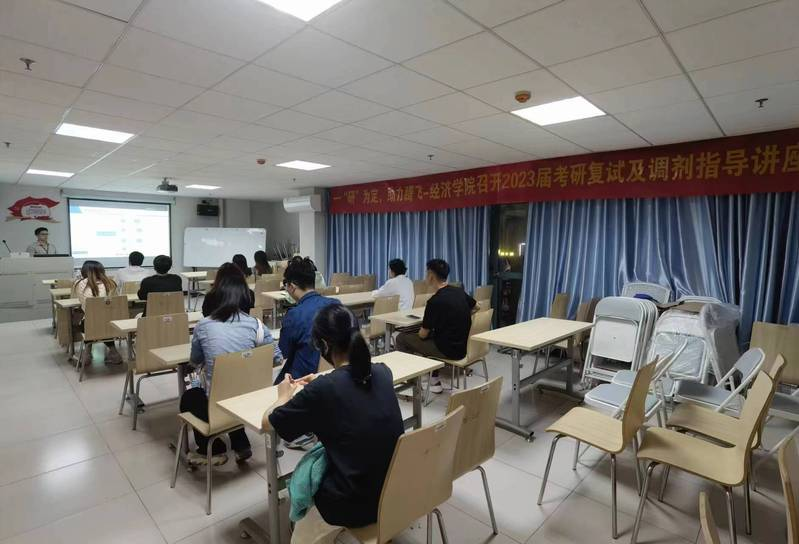 本网讯(记者 毛锦淇)为让2023届考研学生更好地了解考研的复试与调剂流程,提高考研学子对复试与调剂的整体认知,3月20日晚,经济学院在B9-201及腾讯会议如期召开“一‘研’为定,助力腾飞”2023届毕业生考研复试、调剂指导讲座。讲座邀请了广东新文道考研项目执行副总经理徐奔进行授课。经济学院学生工作办公室负责人、毕业班辅导员、就业创业专员及2019级全体考研学子参会。