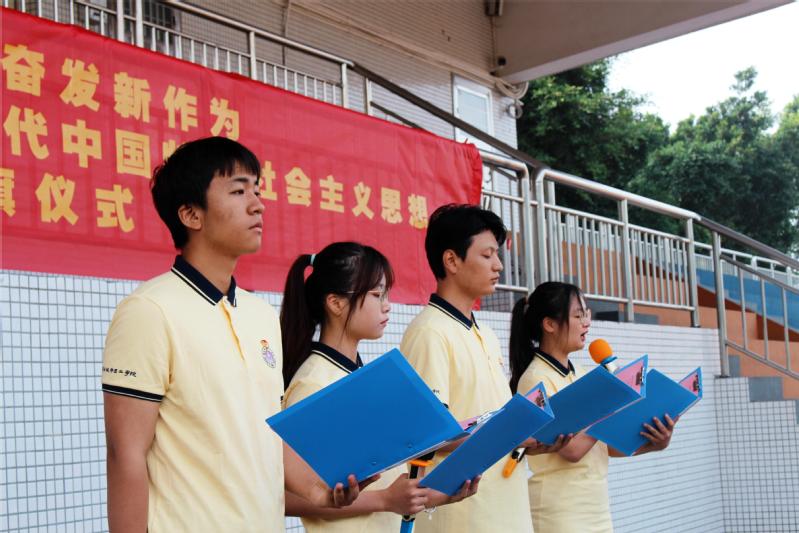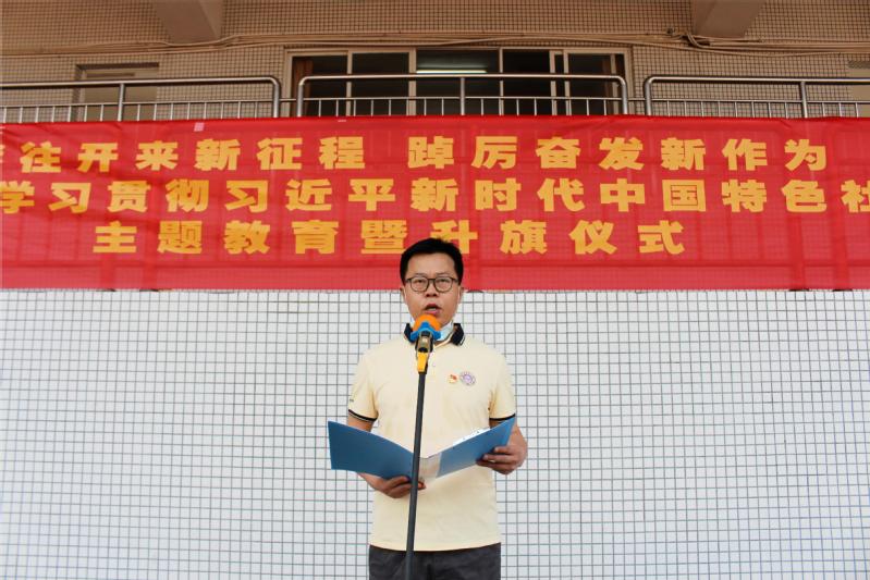 在飘扬的国旗下,任远书记作学习贯彻习近平新时代中国特色社会主义思想主题讲话。他指出,近年来,党和国家事业取得历史性成就、发生历史性变革,最根本的原因在于有习近平总书记作为党中央的核心、全党的核心掌舵领航,在于有习近平新时代中国特色社会主义思想的科学指引。习近平新时代中国特色社会主义思想坚持理论和实践相结合、战略和战术相贯通、世界观和方法论相统一,是我们做好一切工作的思想宝库和行动指南。他强调,要全面、系统学习习近平新时代中国特色社会主义思想,深刻理解这一重要思想的世界观、方法论和贯穿其中的立场观点方法,做到从原文原著系统学、集中领读重点学、聚焦专题研讨学、线上线下结合学、知行合一贯通学,推动学习往深里走、往实里走、往心里走,提高思想觉悟,切实做到筑牢信仰之基、补足精神之钙、把稳思想之舵。同时,任远结合学院实际情况,对同学们提出凝心铸魂、强化忠诚、实干担当、守正创新的要求,激励同学们要以“功成不必在我”的胸怀,“功成必定有我”的担当,继往开来,踔厉奋发,共同擘画中华民族永续发展的美好未来。