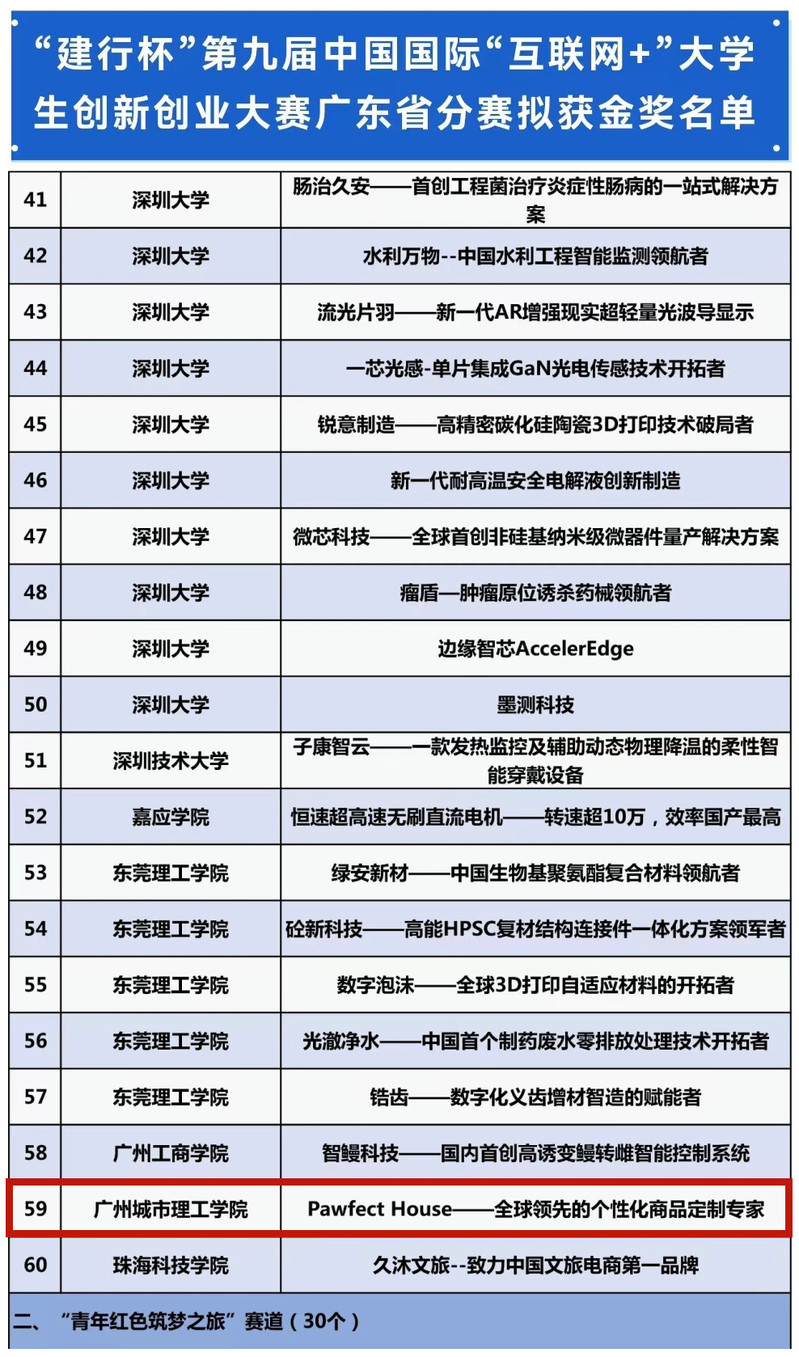 本网讯(记者 毛锦淇)8月14日-16日,第九届中国国际“互联网+”大学生创新创业大赛广东省分赛(以下简称省赛)现场总决赛在深圳大学粤海校区成功举办,大赛以“我敢闯,我会创”为主题,全省共有165所学校,44.71万个项目报名参赛,参赛学生超181.4万人次,最终经省赛网评共有380个项目成功入围现场总决赛。经激烈角逐,我校经济学院《Pawfect House——全球领先的个性化商品定制专家》项目获得现场总决赛金奖。