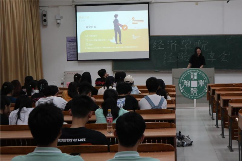 本网讯(记者 刘坤钊 钟思宇)为建设经济学院学风建设工作,经济学院于5月9日举办以“共享经验智慧,携手共进未来”主题的学习经验分享会。此次分享会旨在助力同学们更科学地规划大学学习生活,全面提升职业竞争力,同时充分发挥优秀同学的榜样示范作用,切实满足同学们在学习、竞赛等方面的需求,激发同学们的学习动力,完善学习方法。本次学习经验分享会特邀2021级国际经济与贸易4班的郑林慧同学与2021级国际经济与贸易5班的罗淑丽同学。