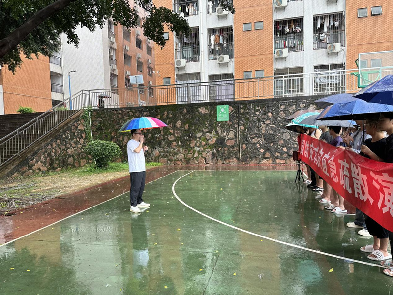 最后,任远对本次演练进行了总结。他表示,通过此次演练发现了一些存在的问题和不足,将进一步完善应急预案和救援体系。呼吁同学们要时刻关注天气预警和灾害信息,学习防灾减灾知识,提高自我保护能力。同时对近期学校发生诈骗案例进行讲解与反诈防诈知识宣传,希望各位同学提高警惕、小心诈骗。