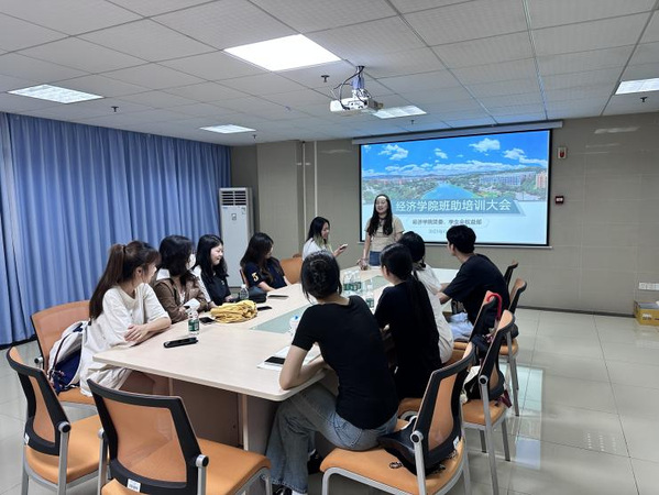 本网讯(记者 刘坤钊 毕心怡)为迎接新生入学工作筑牢坚实基础,进一步提升新生班级宿舍助理的业务能力,帮助其更好地协助新生适应校园生活,6月13日下午,经济学院在B9中庭会议室举办新生班级宿舍助理专项培训会议,经济学院团委书记、学生会指导老师、2025级新生辅导员与学生班级宿舍助理共15人参与本次会议。