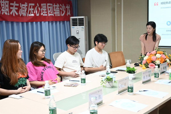 本网讯(记者 宗雅婷 李嘉昕)为缓解期末备考压力,经济学院以一场心理团辅沙龙为契机,为学生心灵充电,让学生以积极良好的心态应对期末考试。6月17日,经济学院在B9二楼中庭会议室举办了“‘经’彩应考•减压赋能”的期末减压心理团辅沙龙活动,邀请广州城市理工学院心理中心、心理健康教研室负责人,应用学副教授,国家二级心理咨询师职业资格认证师、广东省高校心理咨询师(高级)、沙盘心理咨询师鲁丹凤教授担任主讲嘉宾,经济学院书记任远、学生工作办公室负责人以及师生共40余人参与活动。