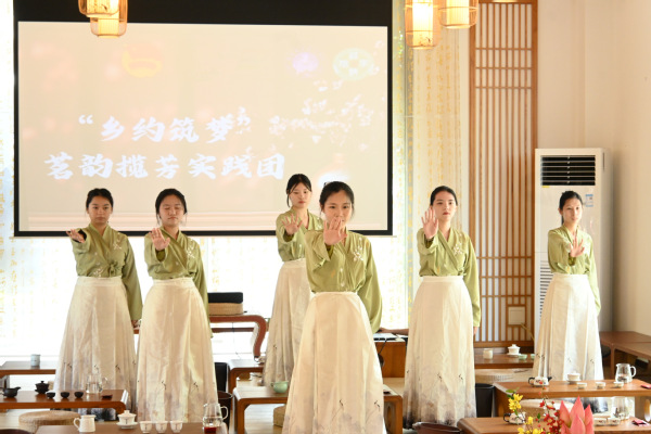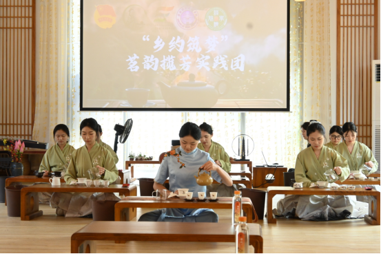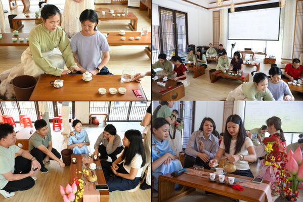 实践团高级茶艺技师用“理论讲解+现场实操演示”的方法,系统讲解了禅茶文化历史、茶叶品类鉴别、茶具的种类及使用、冲泡技巧以及茶文化礼仪等专业知识。实践团带来从鉴别茶叶到表演茶艺的全过程展示,还围绕“旅游场景里怎么创新表达茶艺”等话题进行了深入讨论。
