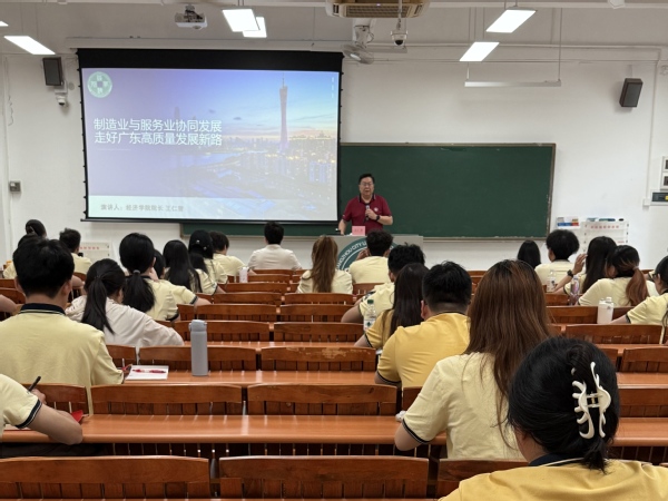 本网讯(记者 张劲翼)2026年是我国“十五五”规划开局起步的关键之年,为深入学习贯彻国家产业发展战略,引导青年学子将专业知识与时代实践深度结合,经济学院第九期思政工程学习班“2026年院长上第一堂思政课”如期开讲。经济学院院长王仁曾担任主讲人,以“制造业与服务业协同发展 走好广东高质量发展新路”为主题,为全体学员带来一场兼具理论深度、实践温度与专业高度的思政盛宴。